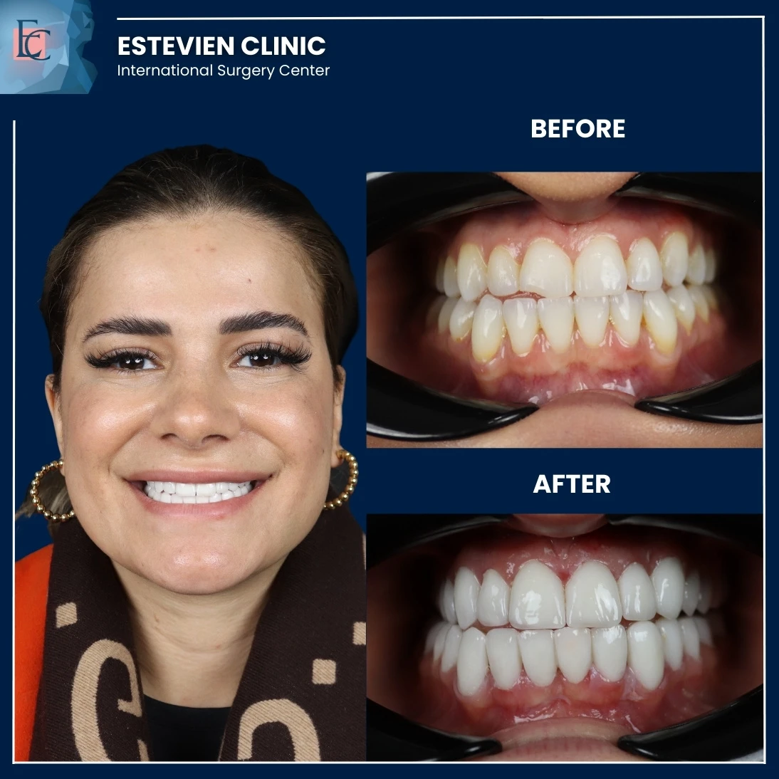 تُعد التيجان المصنوعة من الزركونيوم وقشور E-max اللاصقة من أكثر الخيارات شيوعًا. يمكن تخصيص تيجان الزركونيوم لكل نوع من الأسنان، مما يوفر هيكلًا متينًا ومظهرًا طبيعيًا. توفر قشور E-max اللاصقة نقلًا أعلى للضوء، مما ينتج مظهرًا أكثر طبيعية، خاصةً للمرضى الذين لديهم توافق جيد للعضّة وأسنان مستقيمة نسبيًا.